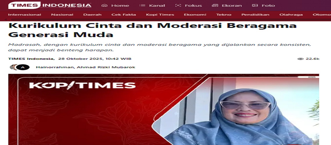 Berita Selengkapnya : https://timesindonesia.co.id/kopi-times/562194/kurikulum-cinta-dan-moderasi-beragama-generasi-muda